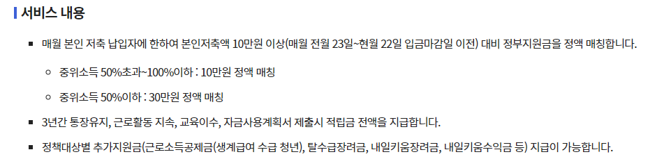 - 청년 내일저축계좌는 청년들의 경제적 자립과 자산 형성에 실질적인 도움을 줍니다.