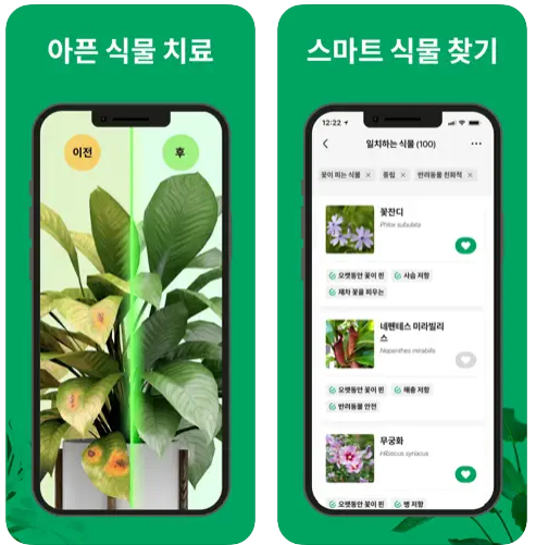 식물, 나무, 꽃 식별; 맞춤형 관리 가이드; 질병 자동 진단