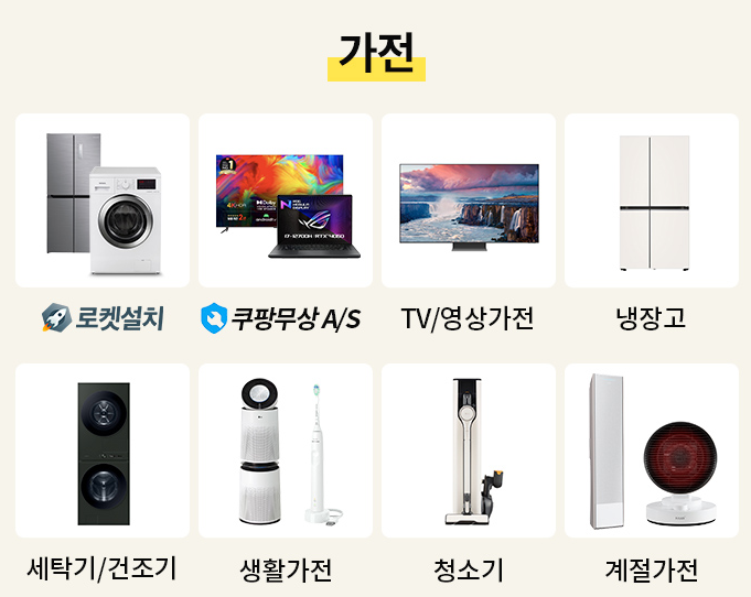 쿠팡쇼핑몰 가전의 가전제품 카테고리별 추천